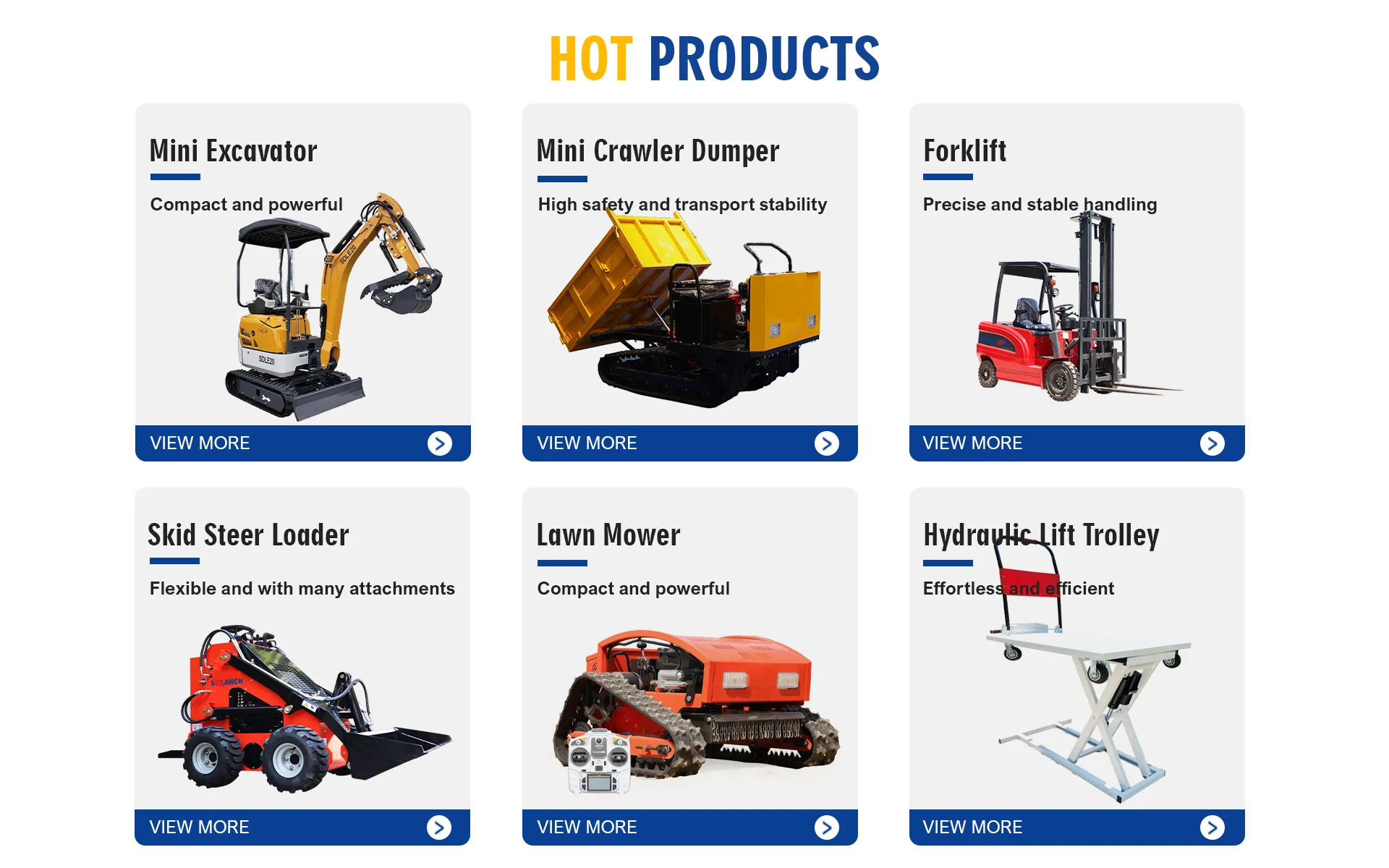 主营产品: 迷你挖掘机、高尔夫球车、滑移装载机、自卸车、叉车